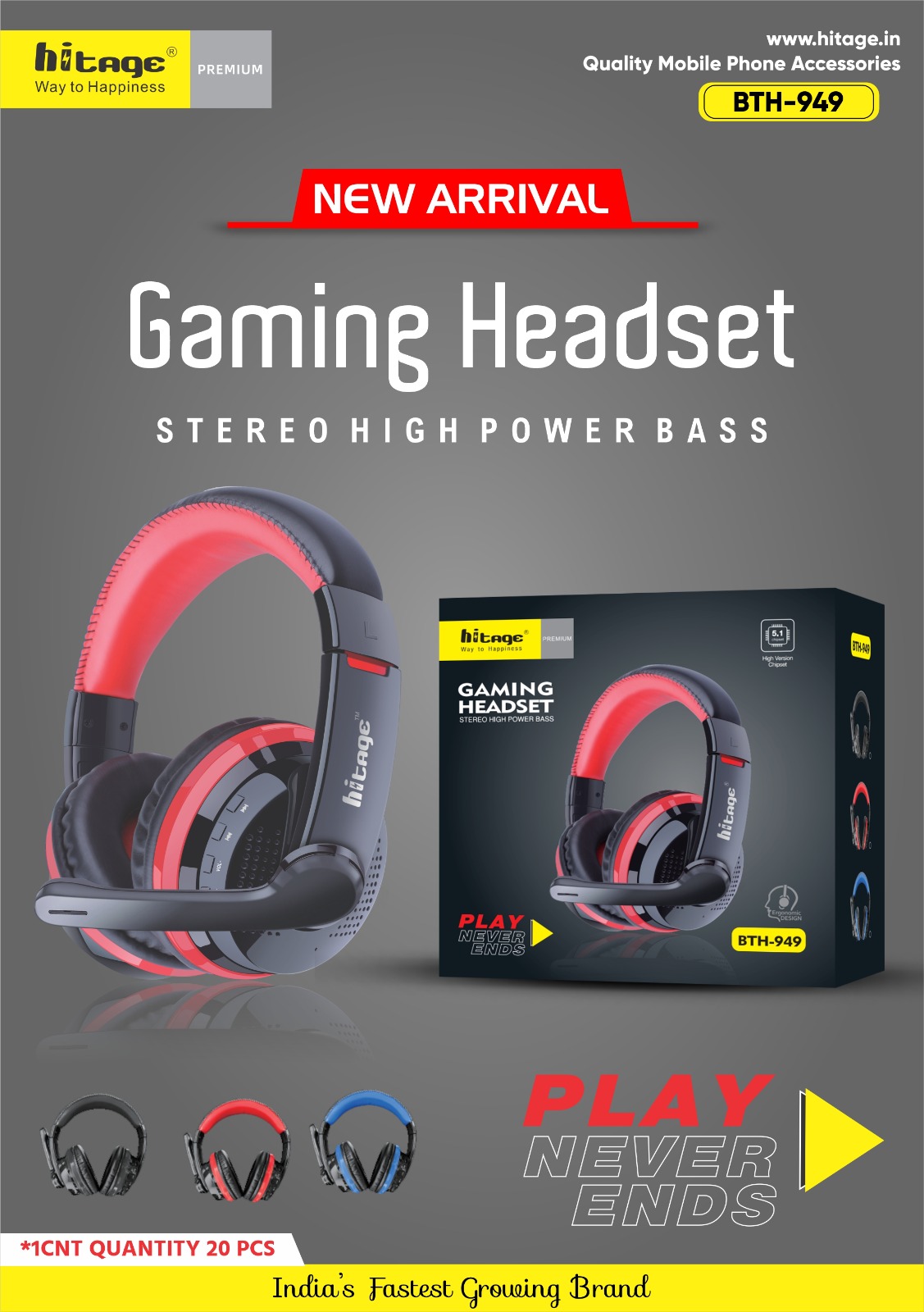 Hitage BTH-949 Gaming and Wireless Headphones. The headphones can easily and quickly compatible with smart phones, tablets and other wireless enabled music devices within 10m range, bringing you crystal clear sound effect. Please make sure the driver software of receive adapter is fully updated when connected to PC or laptop.